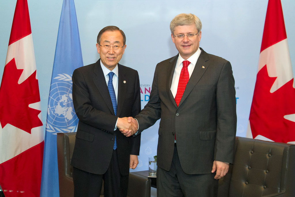 (Secretary-General Ban Ki-moon meets with Prime Minister Stephen Harper of Canada. UN Photo/Eskinder Debebe)