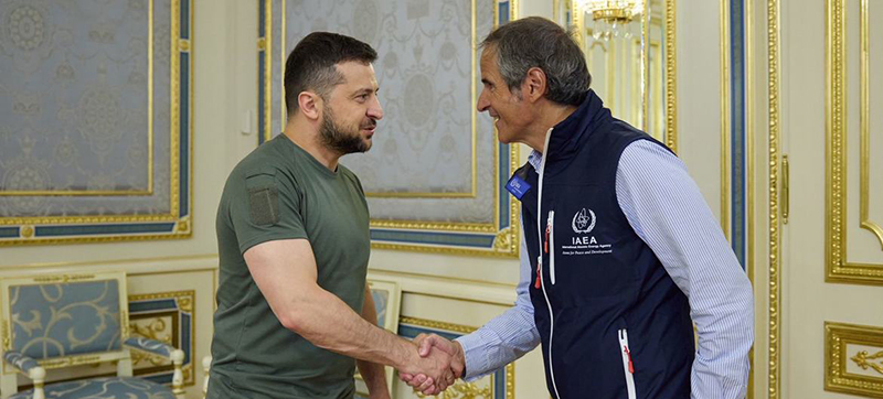 Mr. Grossi is leading the 14-member mission from the Vienna-based IAEA, which set out for Ukraine on Monday. He met with President Volodymyr Zelenskyy in the capital, Kyiv, the following day.