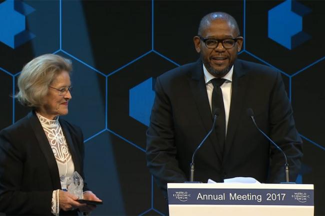Whitaker, who is the Special Envoy for Peace and Reconciliation for the UN Educational, Scientific and Cultural Organization (UNESCO), received the 2017 Crystal Award at the opening of the 47th World Economic Forum Annual Meeting in Davos, Switzerland.
