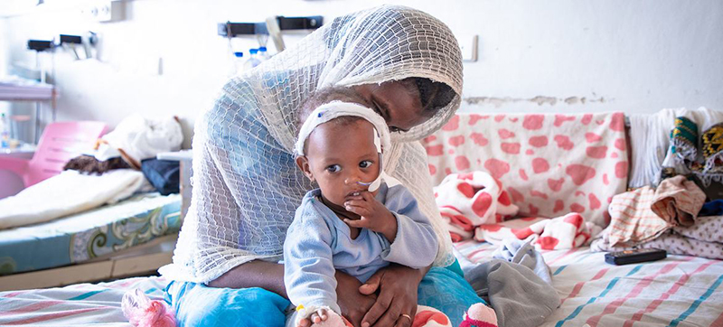 A 13-month-old girl is treated for severe malnutrition at a hospital in Mekelle in Tigray, Ethiopia. Photo Courtesy: UNICEF/Raphael Pouget