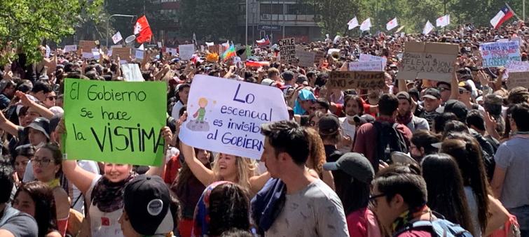 Protesters take to the streets in Santiago, Chile. (October 2019)
